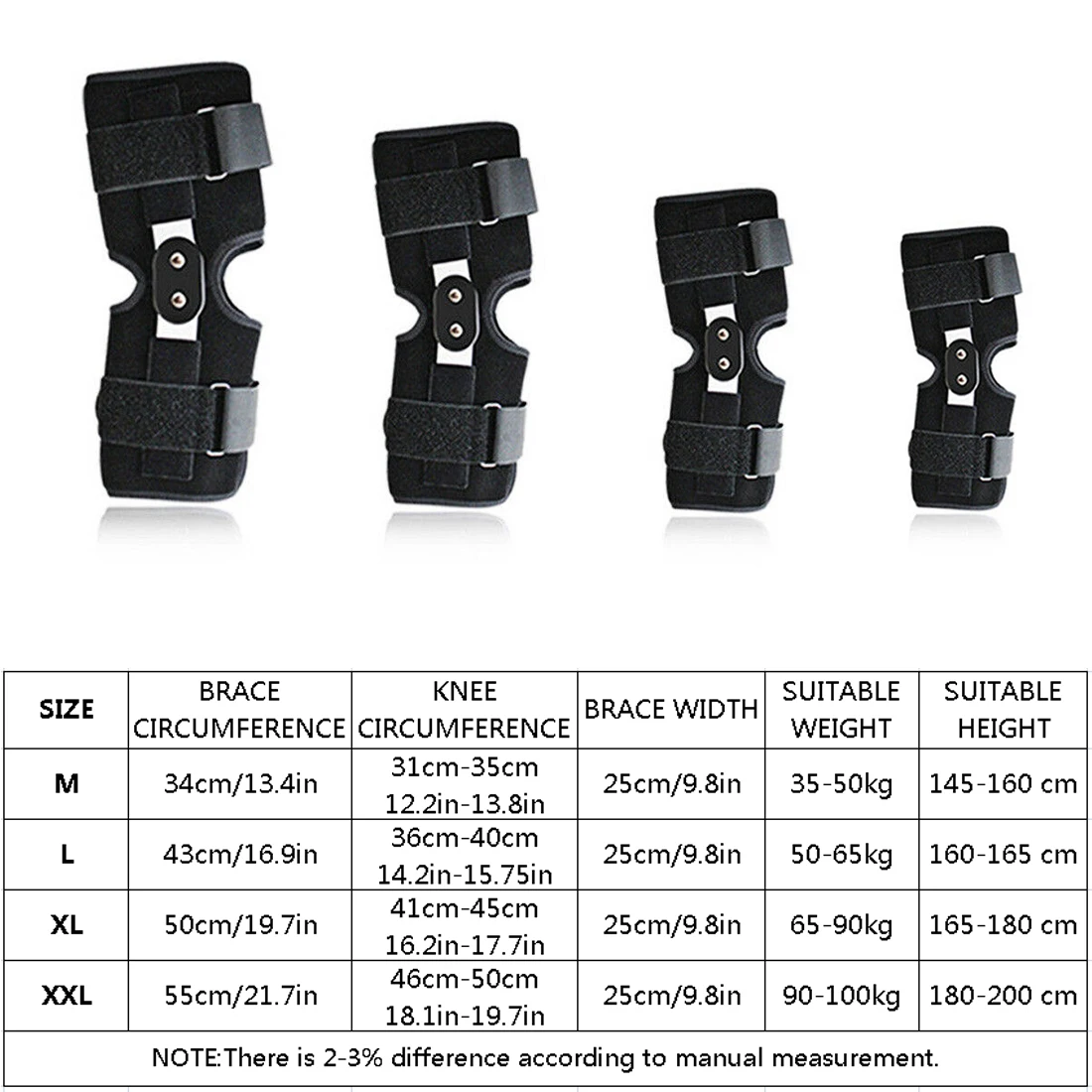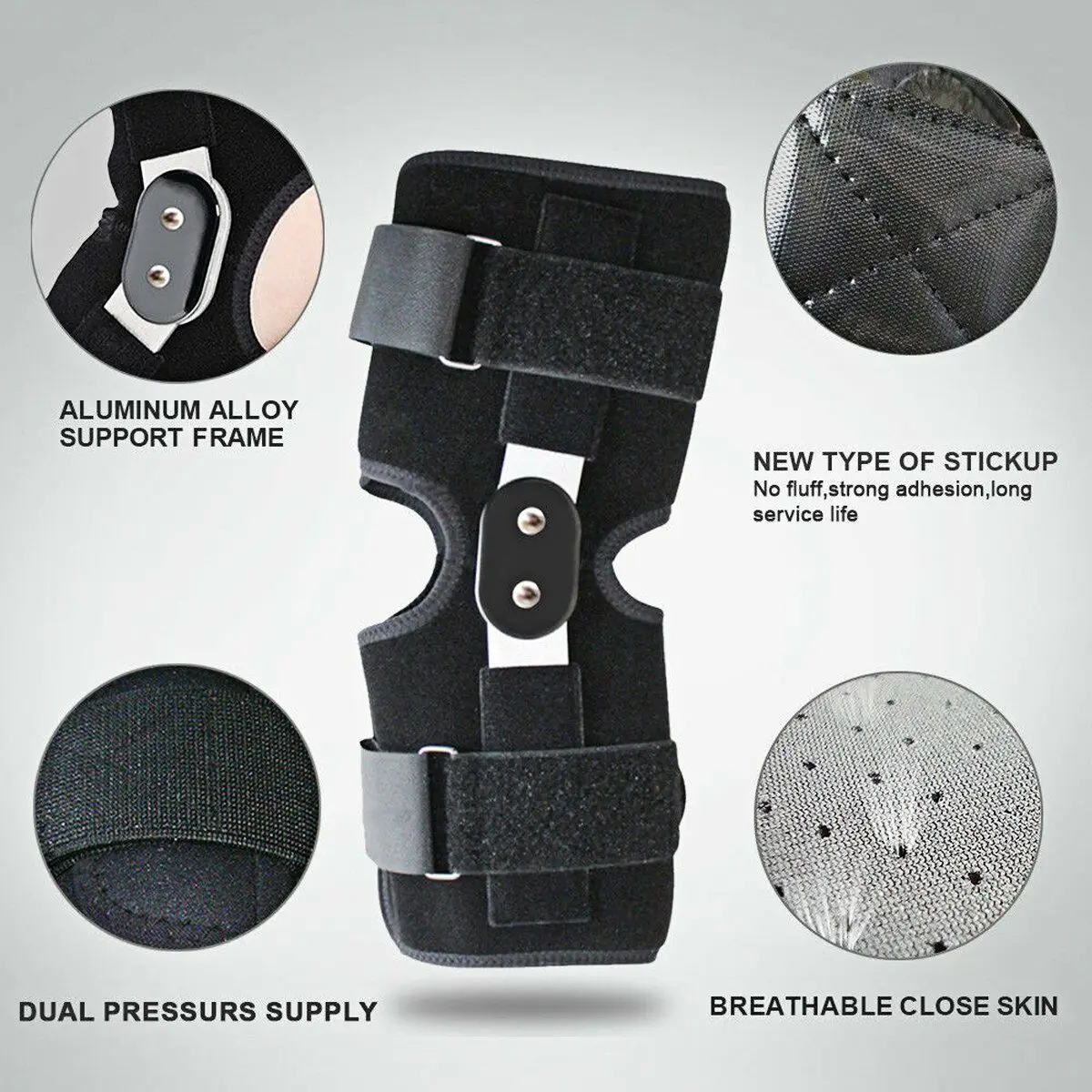 La abrazadera cuenta con dos sistemas con bisagras de aleación de aluminio, uno a cada lado de la rodilla. Puede ajustar el ángulo longitudinal con la rodilla suavemente y mantener el keen en buenas condiciones en la dirección horizontal.