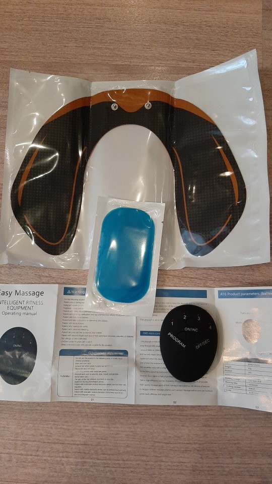 Tipo: Entrenador muscular, ejercitador de músculo, Fitness adelgazante, shapping corporal Material: ABS + PC Color: Negro Alimentación por: 2 pilas alcalinas AAA (no incluidas) Modo de funcionamiento: 6 modos de masaje diferentes Atención: Todo viene sin caja de venta al por menor.