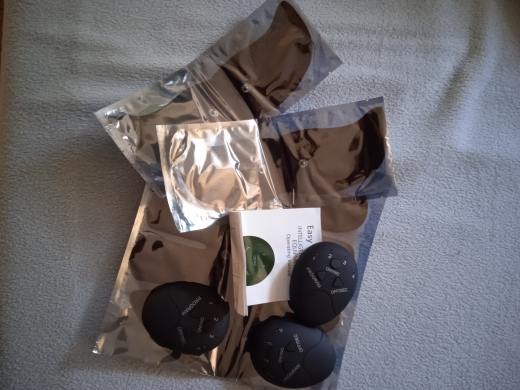 me acaba de llegar, se ve de buena calidad, viene muy bien empaquetado,usa 2 pilas AAA cada estimulador, ha tardado poco en llegar