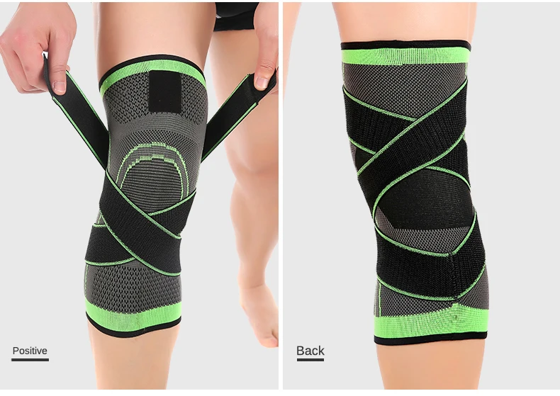 Rodillera de compresión de nylon con tiras de vendaje elástico profesional
