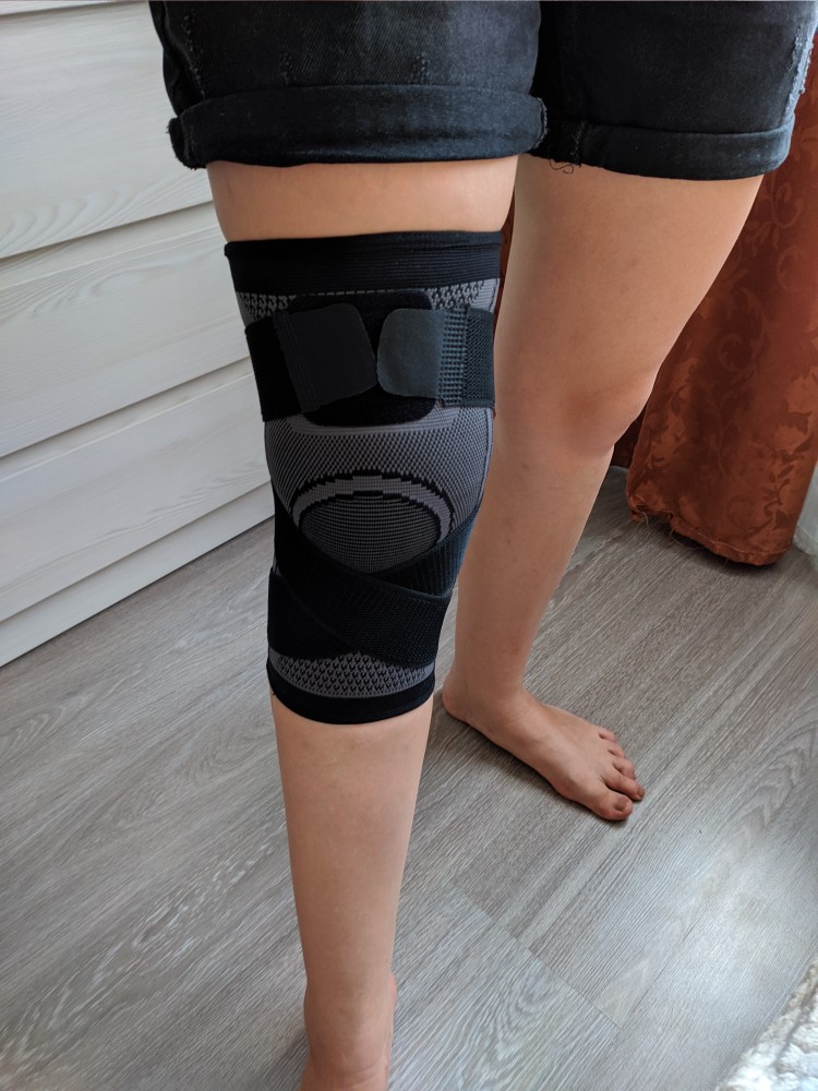 Крутая штука. Отлично фиксирует колено. Купила для мамы, у которой болит нога. Дошло в Ростовскую область чуть меньше чем за месяц. Вот пример, как выглядит на моей ноге. Такой же наколенник на леомаксе втюхивают за 1000 рублей, а тут за 250 - пожалуйста. Только размерчик надо было побольше заказать